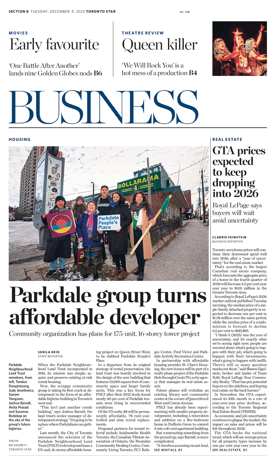 “Parkdale People’s Place is a testament to what happens when residents, non-profits, and government representatives come together around a shared vision for equitable development,” said Anita Prasad, Board President, The Neighbourhood Land Trust. “By securing land in community ownership, we are making affordability permanent and ensuring that Parkdale’s future remains rooted in inclusion, creativity and care. This project reflects decades of community effort to build housing that serves people first.”